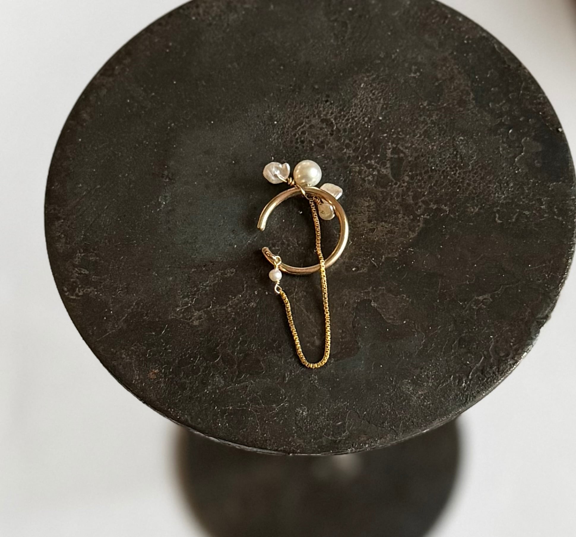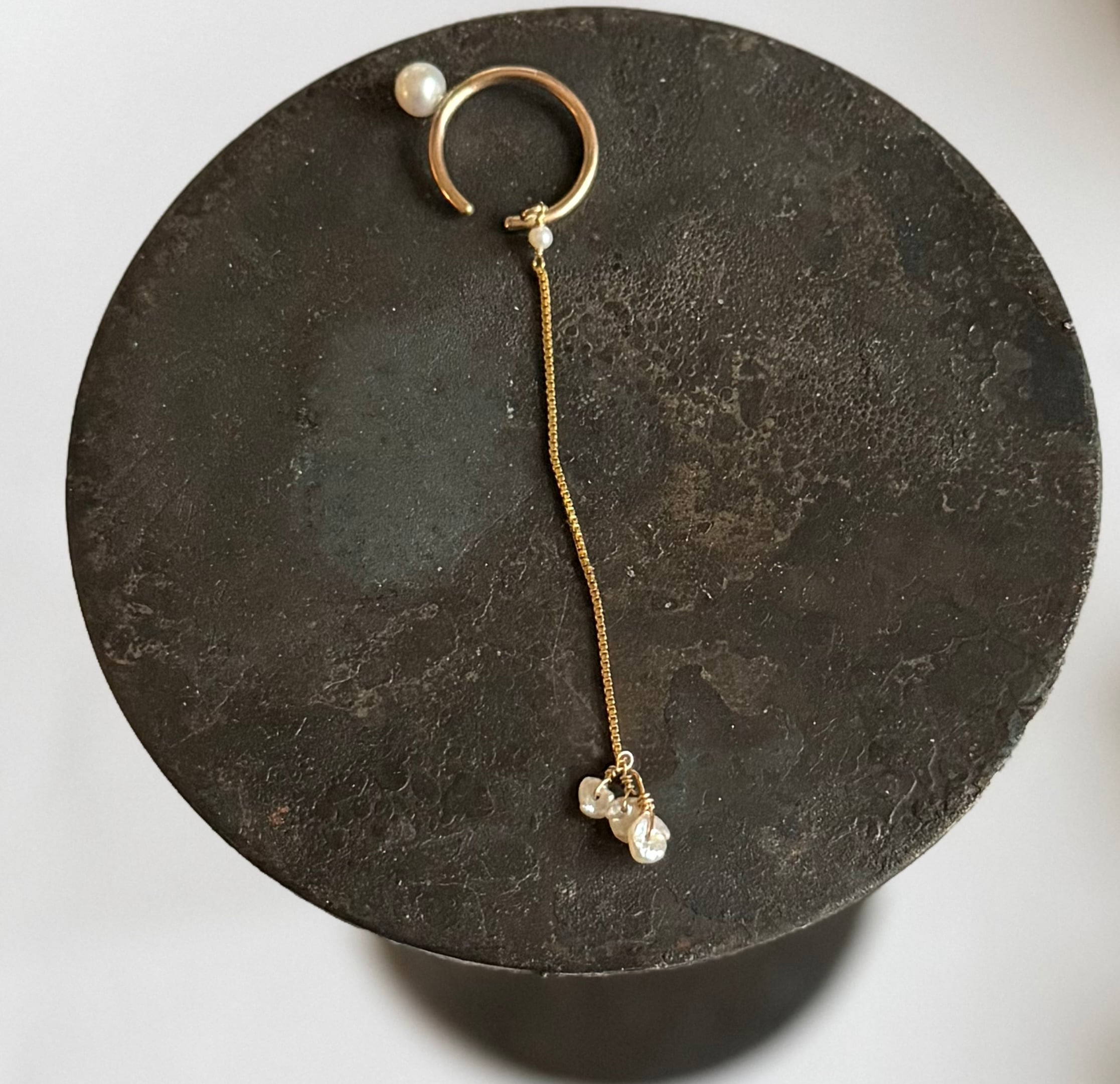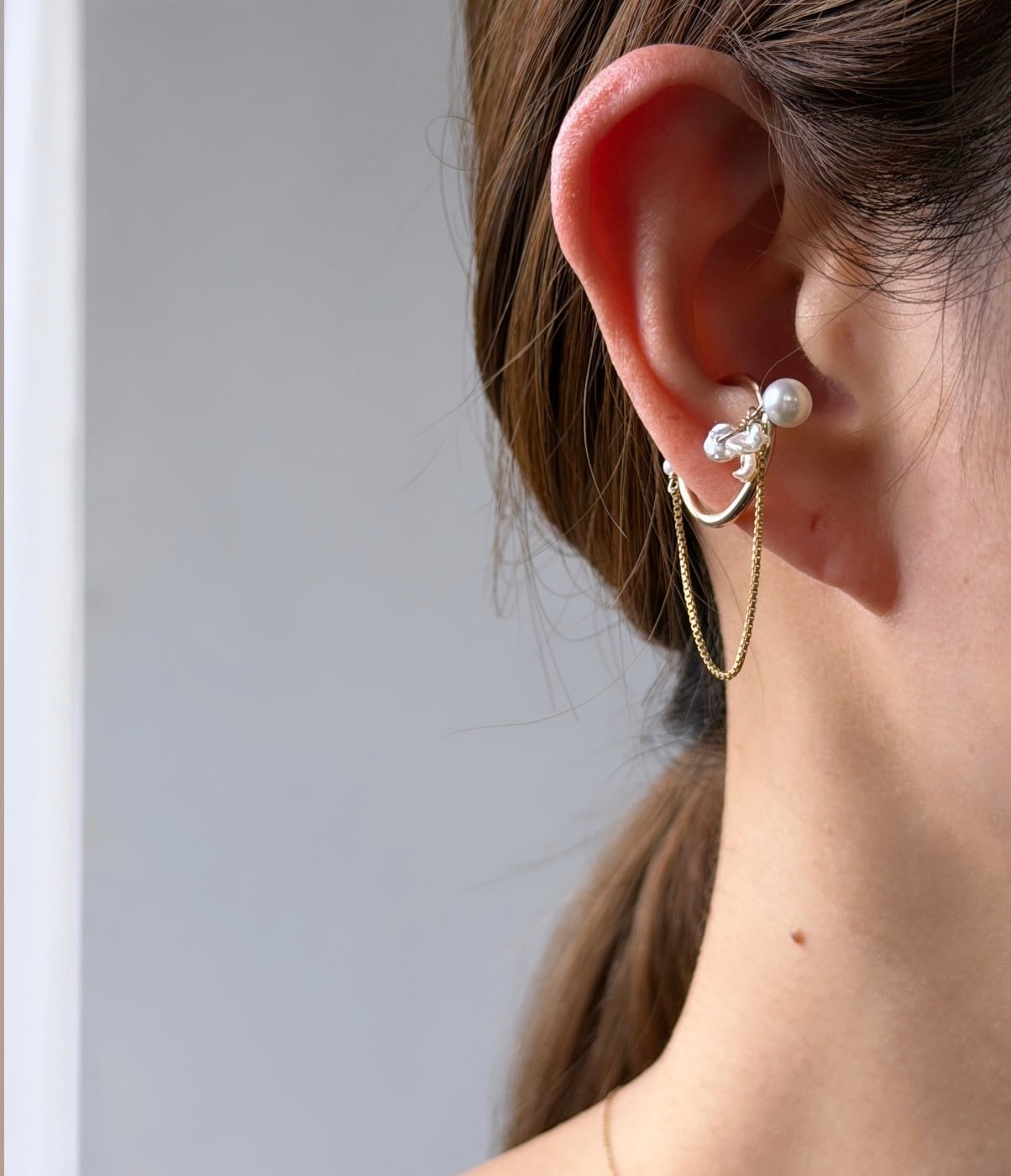 イヤカフリング ロングチェーン 淡水パール あこや真珠
